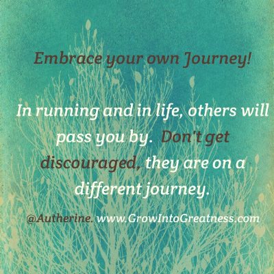 At our core, we are all the same but our journey is often very different. In running and in life, it is ok to let others pass you; they are on a different journey. Define your journey, decide which road you will take and at what speed, don't be distracted by other people, resist the urge to tag along on someone else's journey, especially when your journey becomes challenging, and most importantly, take the time to embrace and enjoy your own journey.